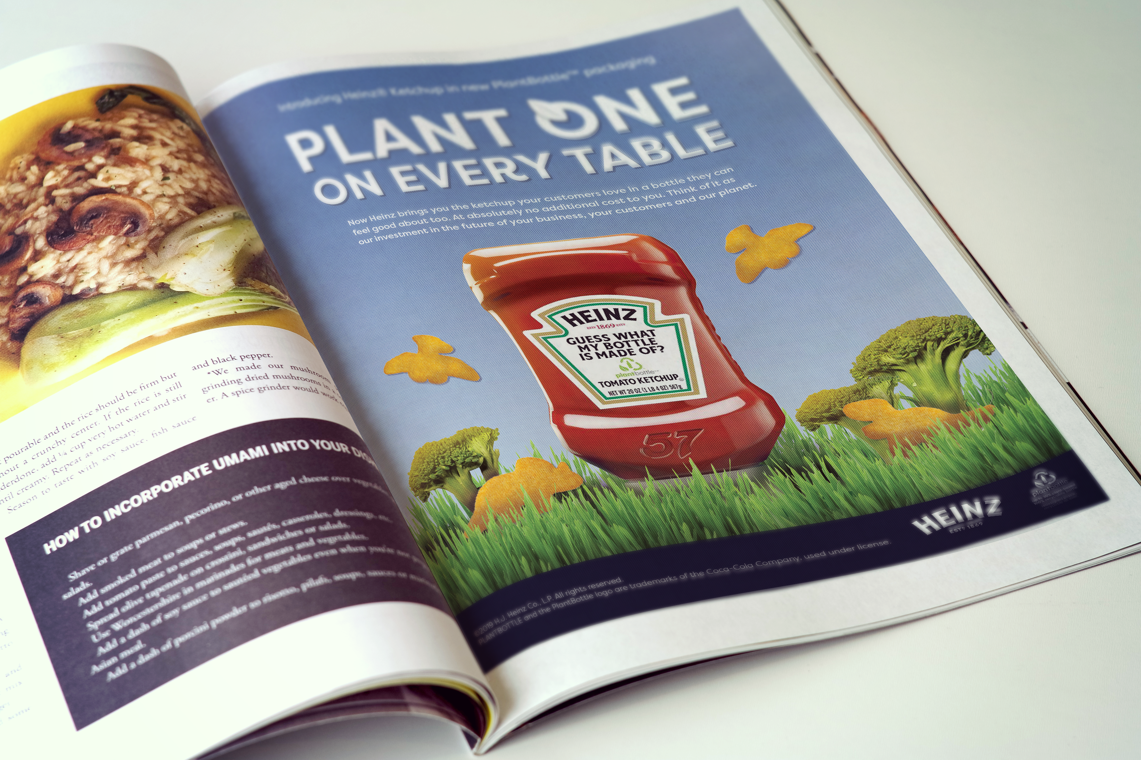 For this assignment, we took pre-written copy for Heinz' Plant Bottle then ideated, created, and executed a magazine ad based on the copywriting.